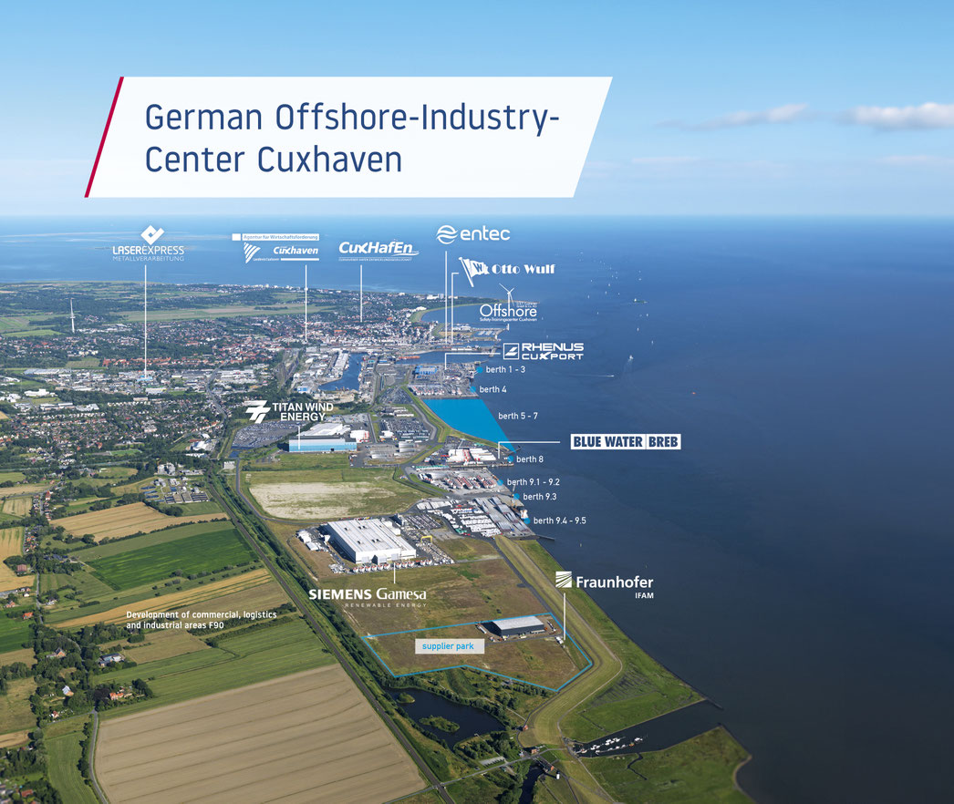 The state of Lower Saxony, the EU, and Cuxhavener Hafen Entwicklungsgesellschaft have invested more than 250 million euros in the port and onshore infrastructure of the Deutsches